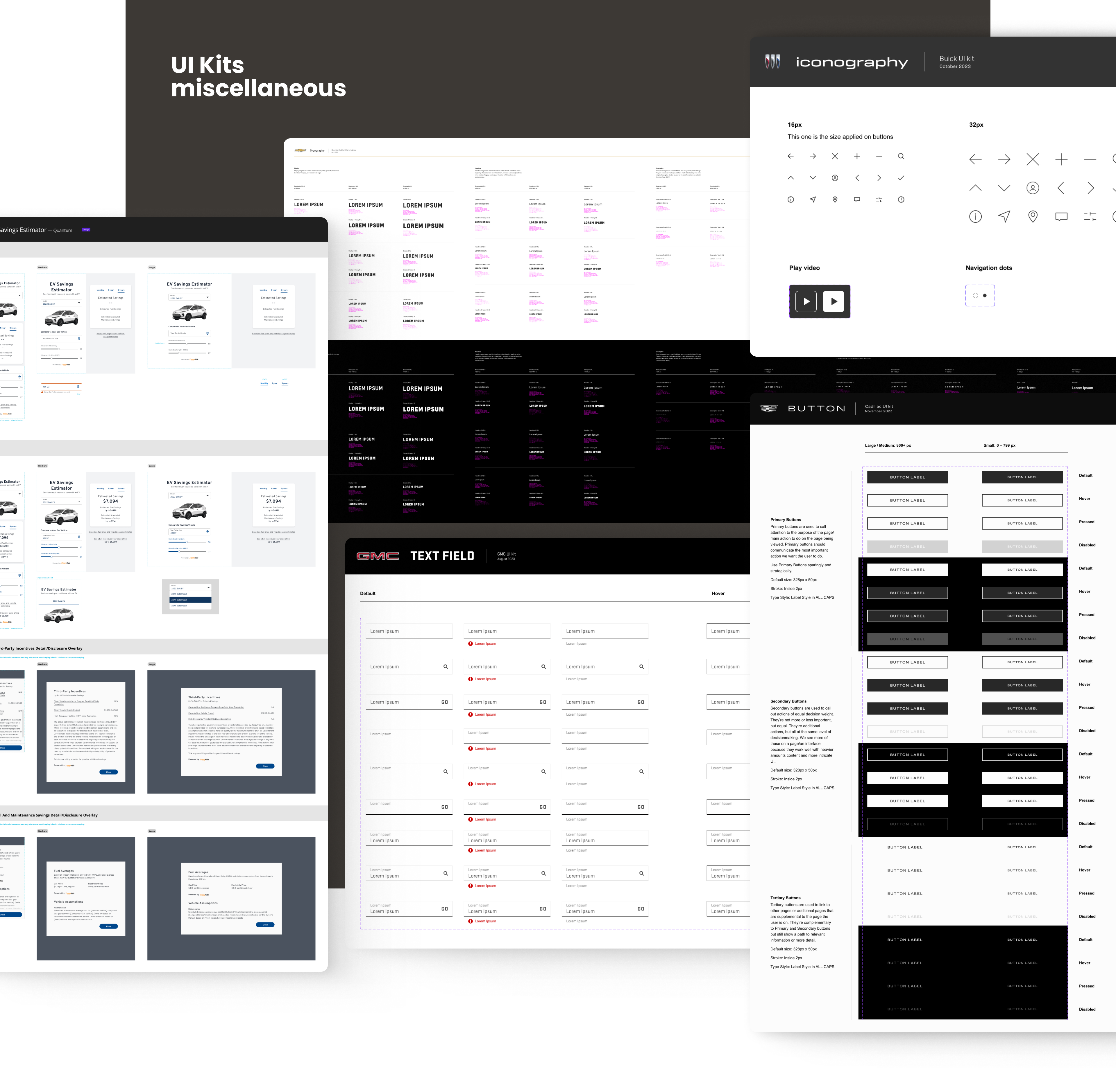 The GM Live Experience pages existed as separate websites and iframes embedded within each brand's .ca websites, and the design systems for these two products were entirely disconnected. One of my most important contributions during this period was creating and managing the UI Kits used by our internal team. Before this work, design components were broadly inconsistent, and collaboration with developers and the .ca teams involved significant friction.